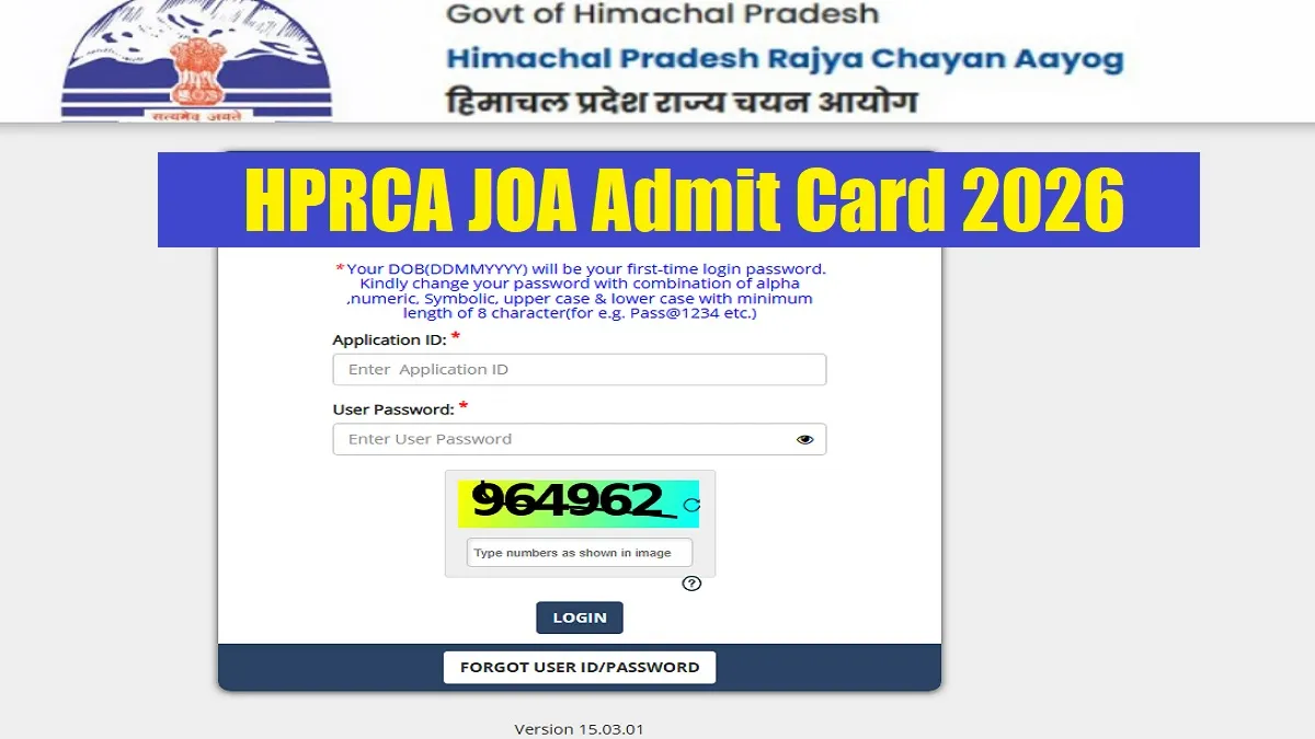 HPRCA JOA Admit Card 2026: The Himachal Pradesh Rajya Chayan Aayog (HPRCA) has released the admit card for the posts of Junior Office Assistant Library & Medical Laboratory Technician Grade III on its official website. The written exam for the Junior Office Assistant Library & Medical Laboratory