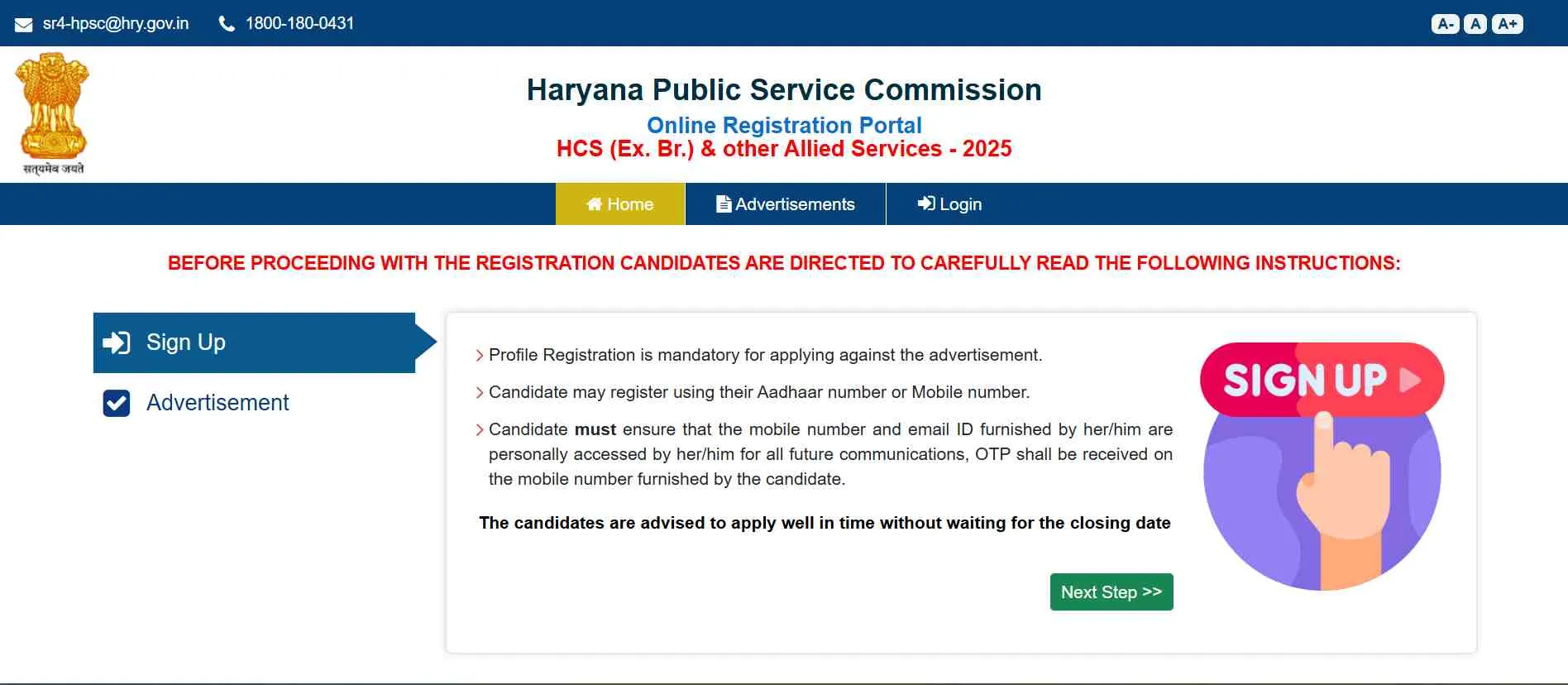 HPSC HCS रजिस्ट्रेशन पूरा करने के लिए पात्रता मानदंडों को पूरा करने वाले उम्मीदवार नीचे दिए सिंपल स्टेप को फॉलो कर सकते हैं।