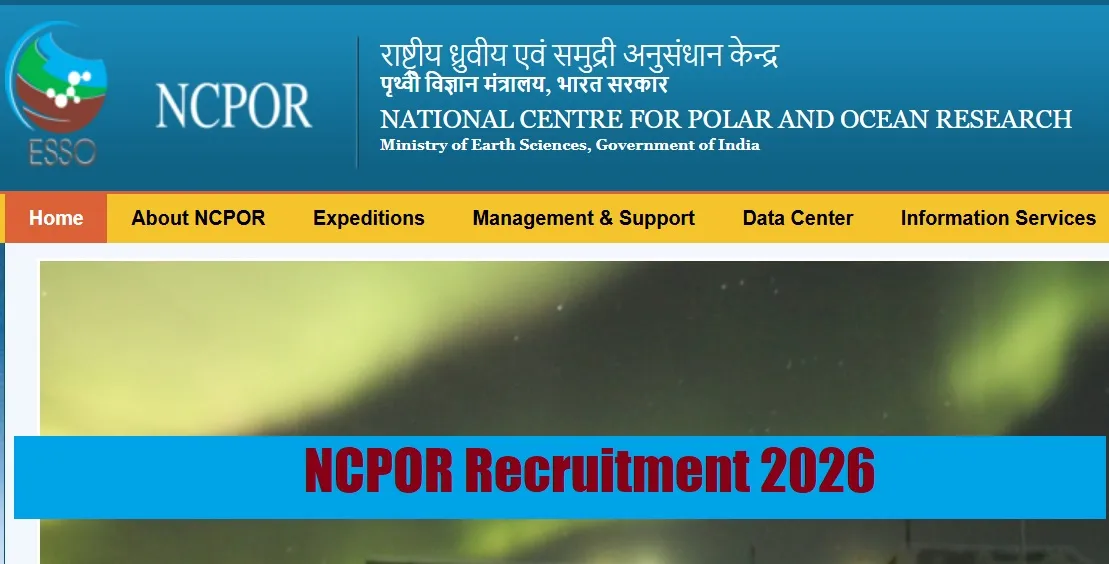NCPOR Recruitment 2026 Notification: National Centre for Polar and Ocean Research, an autonomous Institution under Ministry of Earth Sciences, Government of India has invited applications for the various Posts including Vehicle Mechanic, Generator Mechanic/Operator, Station Electrician, Vehicle Electrician, Operator Excavating Machine and others. Interested and eligible candidates will have to appear in the interview round scheduled on April 29, 30 and May 01, 2026.