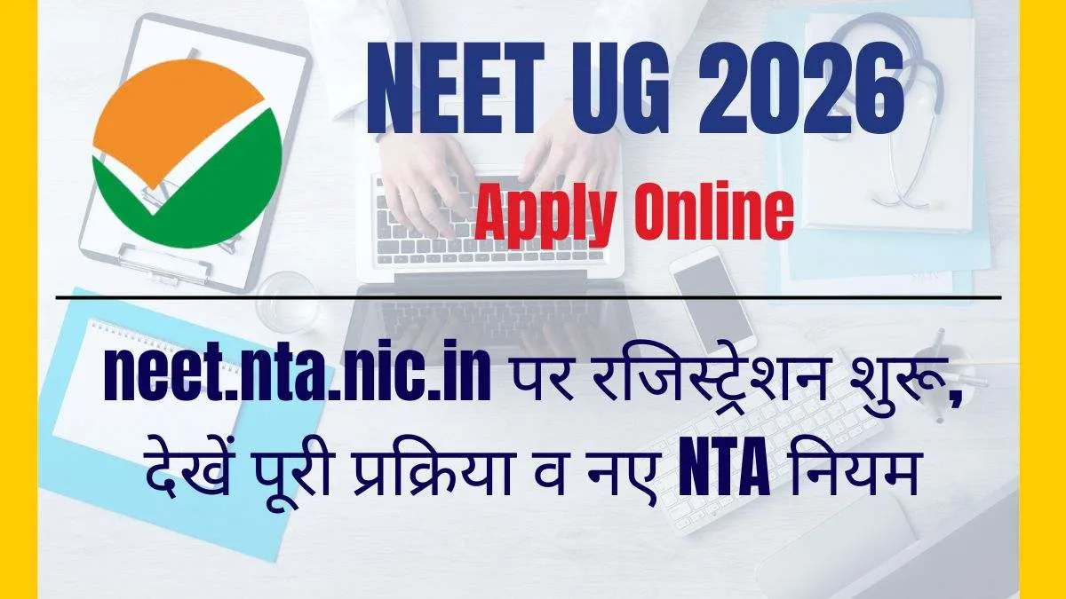 NEET UG 2026 का इंतजार कर रहे लाखों मेडिकल अभ्यर्थियों के लिए बड़ी खबर है। नेशनल टेस्टिंग एजेंसी (NTA) ने NEET UG 2026 के लिए ऑनलाइन आवेदन प्रक्रिया (Registration Form) शुरू कर दी है। जो उम्मीदवार MBBS, BDS, BAMS, BHMS, BUMS, BSMS, B.Sc Nursing समेत अन्य अंडरग्रेजुएट मेडिकल कोर्सेज में दाखिला लेना चाहते हैं, वे अब आधिकारिक वेबसाइट (Official Website) neet.nta.nic.in पर जाकर आवेदन कर सकते हैं।