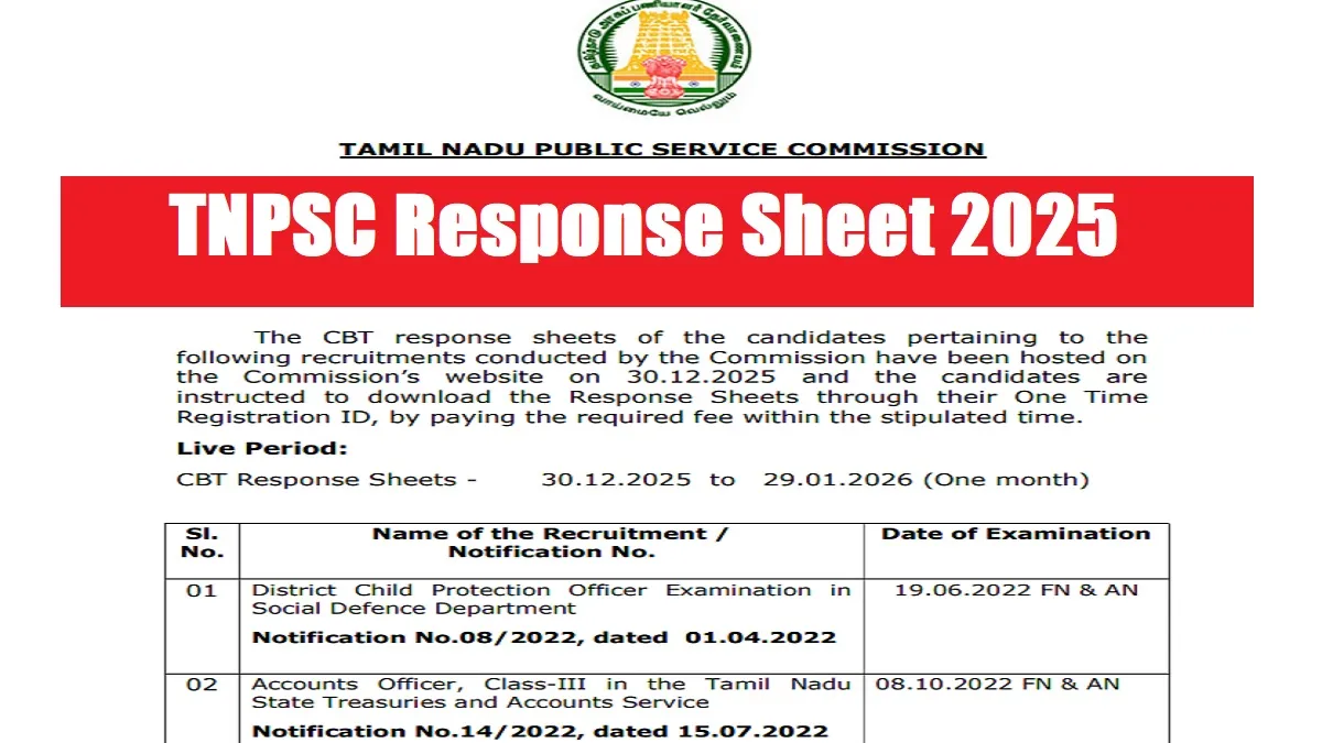 The TNPSC has uploaded the CBT response sheets (answer papers) for various recruitment drives on the Commission’s website. Candidates can download the same directly through the link given below-