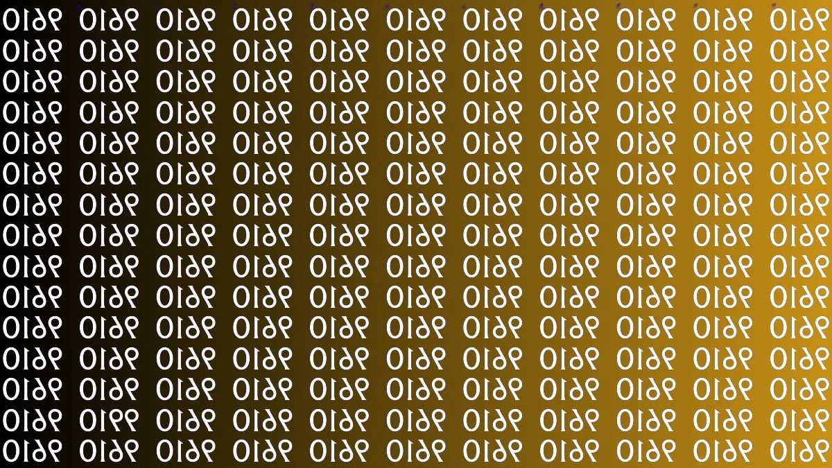 At first glance, this numerical optical illusion appears to be in an inverted repeating series of “9610”. But in this inverted repeating pattern of “9610”, there is a hidden inverted “9910” number in this numerical optical illusion brain teaser test.