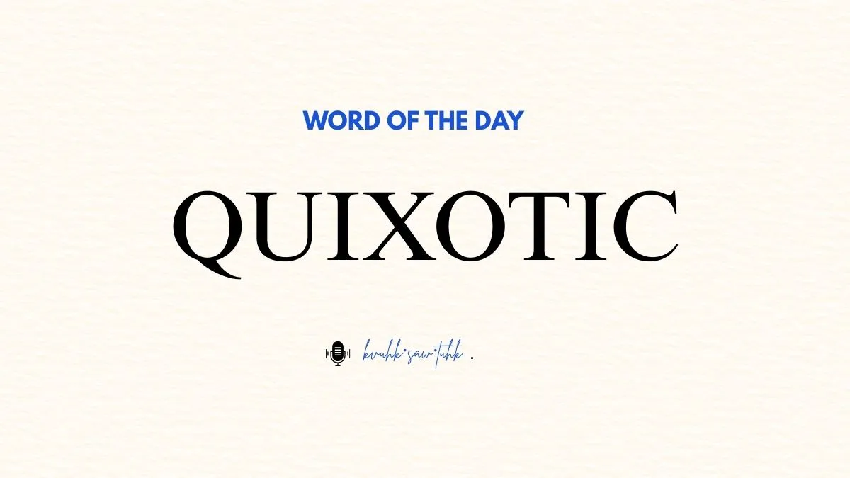 The word of the day is Quixotic. Let's take a quick look at its meaning, origin, usage, synonyms, and antonyms.