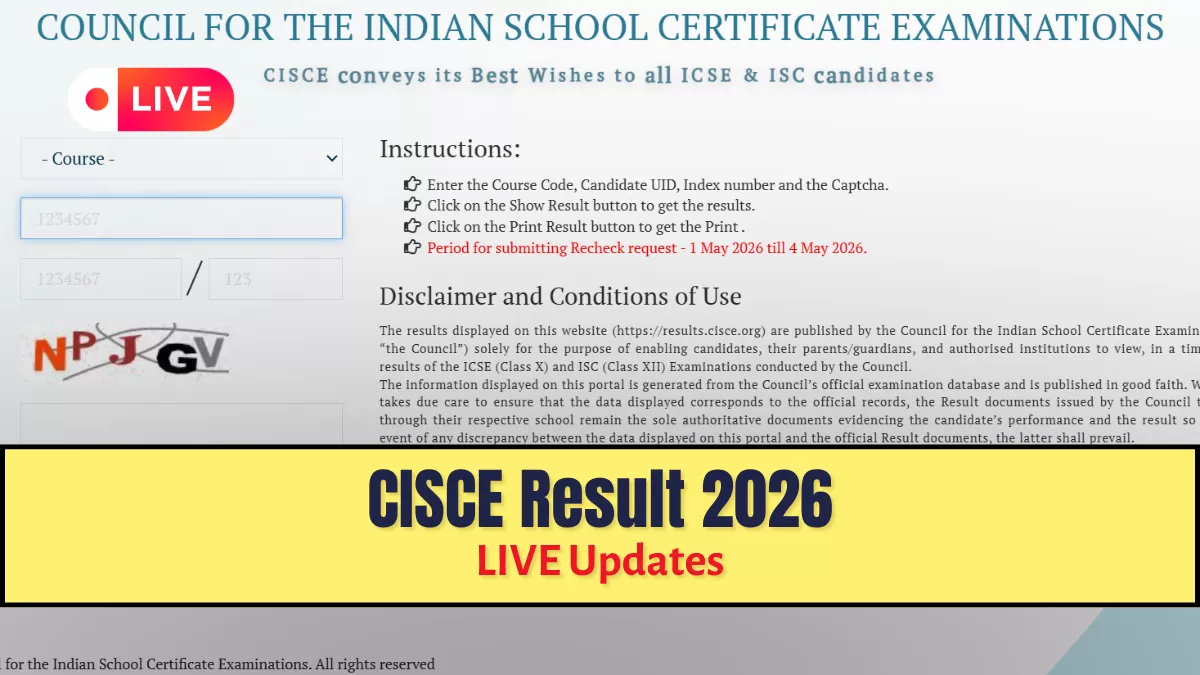 ICSE 10th, ISC 12th Result 2026 LIVE: The Council for the Indian School Certificate Examinations (CISCE) is set to release the CISCE Result 2026 today, April 30, 2026, at 11 AM. Students are advised to visit the official website at cisce.org to download their provisional online marksheets. Students can go to the official result portal at results.cisce.org.