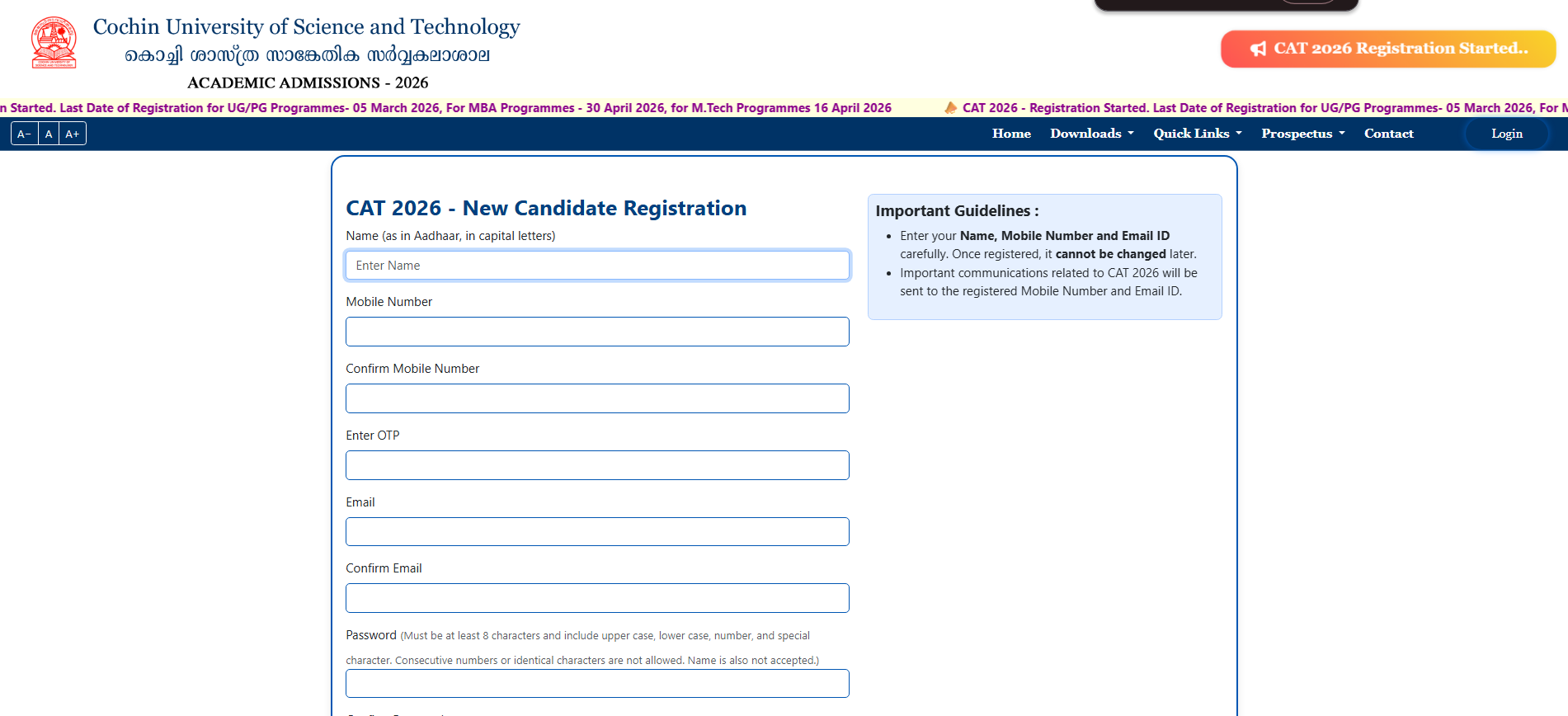 DIRECT LINK - CUSAT CAT 2026 Registration