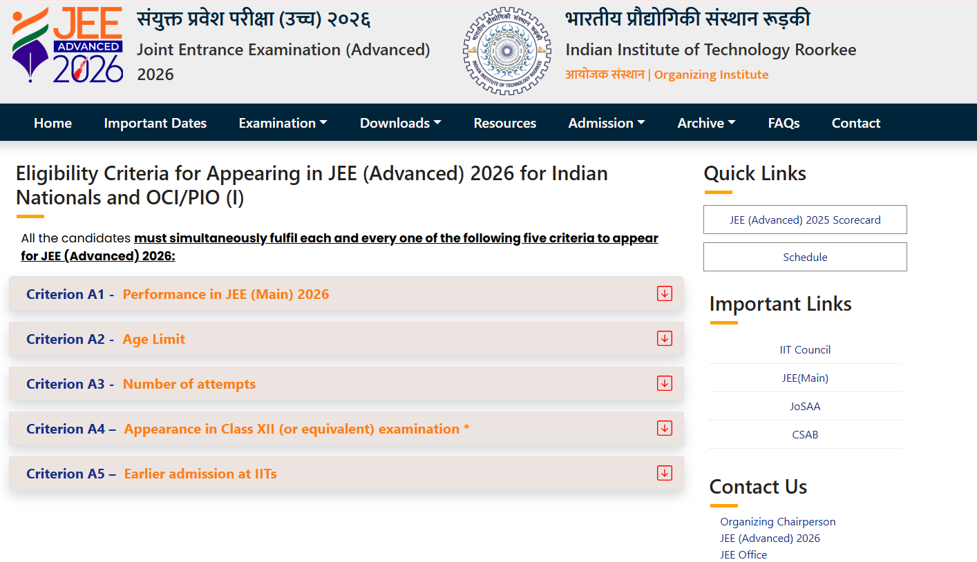 • IIT Roorkee has released the JEE Advanced 2026 eligibility criteria.