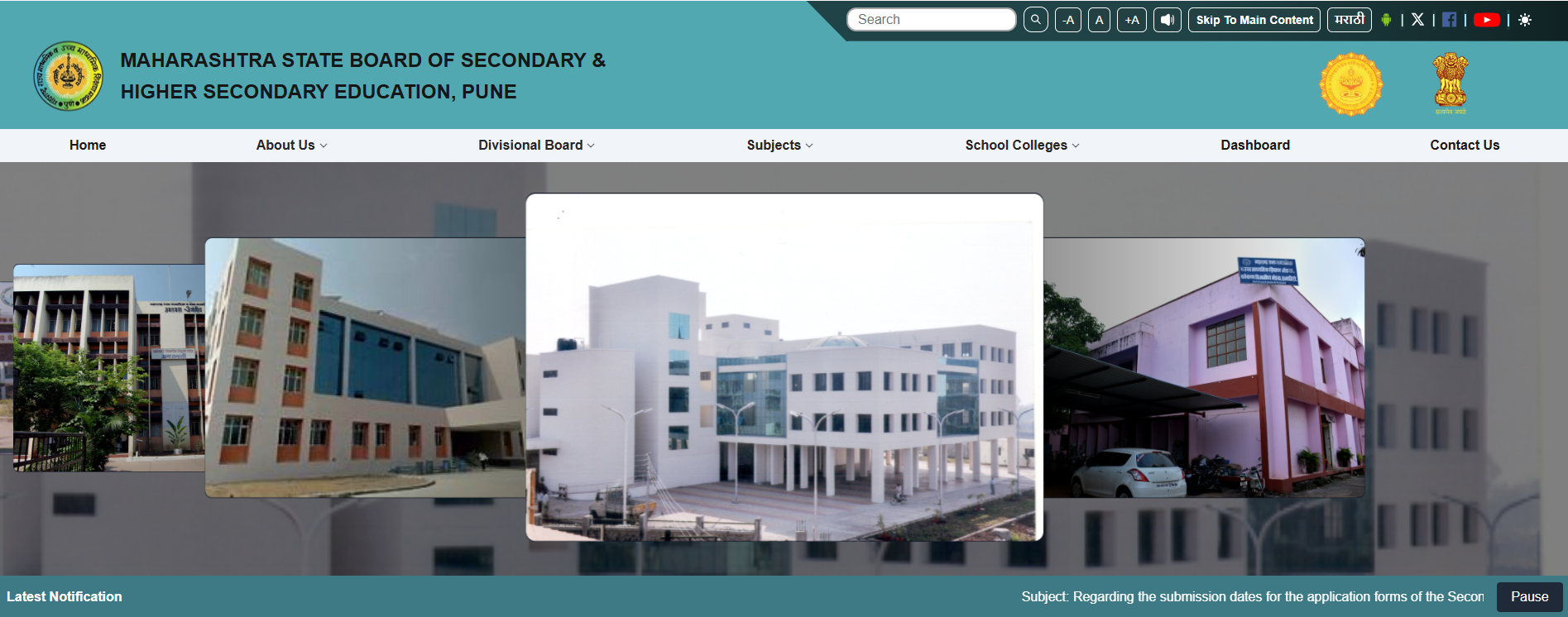 - Under ‘Latest Notification’, click on the hall ticket link for HSC or SSC