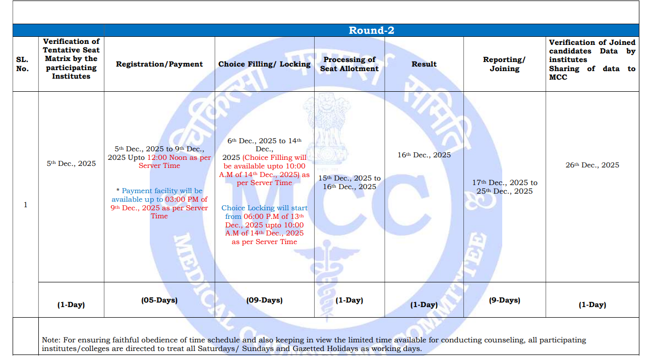 | Round 2 Seat allotment result date | December 16, 2025 |